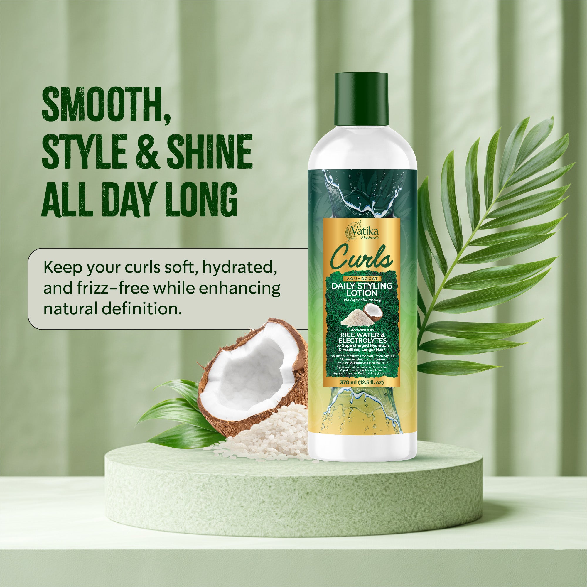 • Vatika Naturals Curls AQUABOOST Daily Styling Lotion with Rice Water & Electrolytes 370 ml