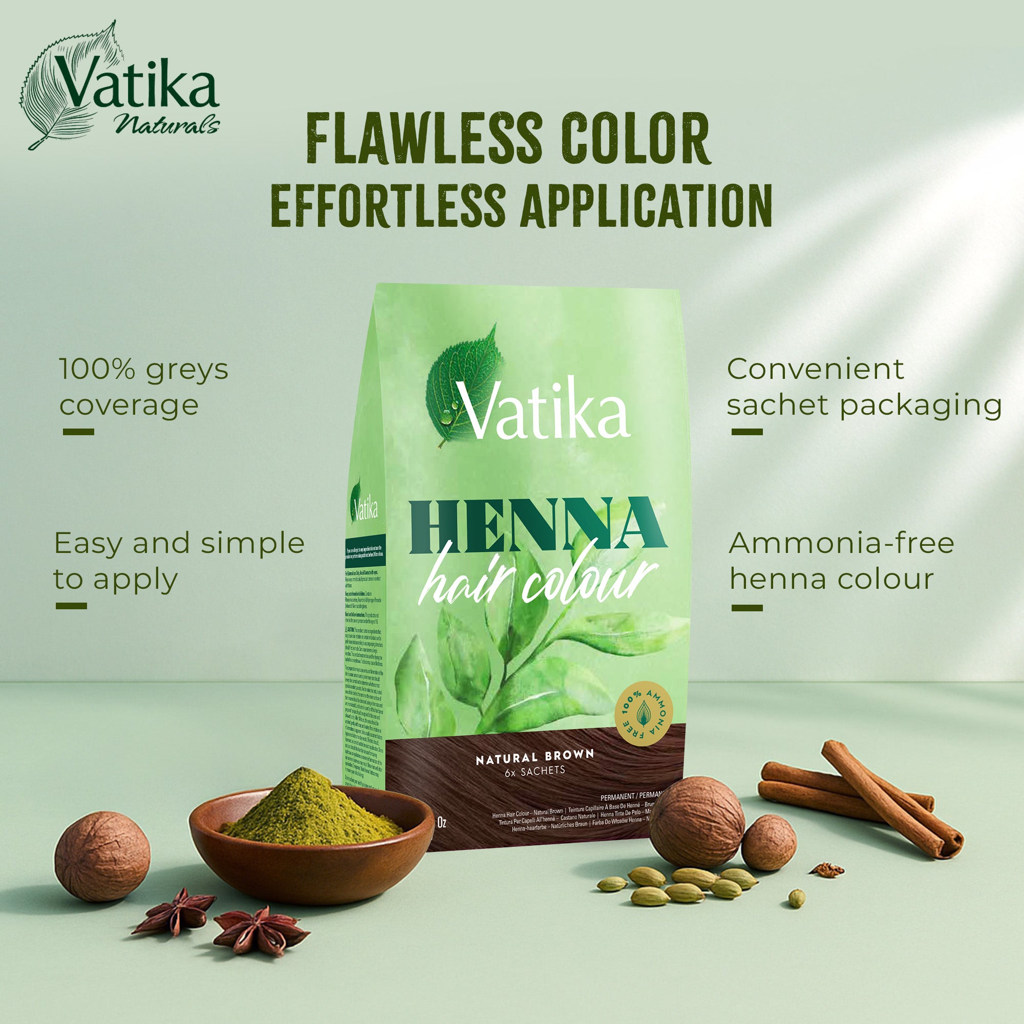 Now you can exchange grey for glossy and glamorous colour. Vatika Henna Hair Colour, enriched with natural Henna powder that aids the process of hiding grey hair, and adds shine and softness to it. Throughout India, the middle-east and Europe, henna has been known for its herbal conditioning properties that strengthens hair and add vitality too. So no worries about damaging your hair while you gently coax the colour of your hair back.